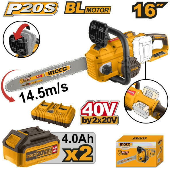 INGCO Akkus láncfűrész 400 mm szénkefe nélküli 2 x 20 V (2 x 4, 0 Ah akku + töltő) (CGSLI401682)