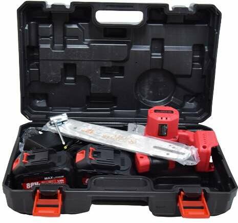 Használata egyszerű, csendes és a biztonsági kapcsolónak köszönhetően veszélytelen.   A speciális csapágyazással ellátott motor hosszú élettartamot biztosít, az automata láncolajozás könnyebbé teszi a fűrész karbantartását. A csomag a fűrészen kívül láncvezető lapot, láncot, az összeszereléshez szükséges szerszámot és 2 db akkumulátort tartalmaz.    Főbb jellemzők: Elektromos láncfűrész Nagy nyomaték Könnyű kezelhetőség Csendes Automata láncolajozás Ház körüli használatra ideális eszköz 12 colos fűrész Praktikus tárolódobozban küldjük Mérete: 45x24x15 cm Műszaki leírás Akkumulátor teljesítmény: 300W Feszültség: 88Vf Láncsebesség: 8 m#sls Akkumulátor: Lithium Maximális vágáshossz: 240 mm Vezetőlemez hossza. : 12’’ A kofferben található: 1db x akkumulátoros láncfűrész automata olajzóval 1db x koffer 1db x akkumulátortöltő 2db x lithium-ion akkumulátor 1db x lánc
